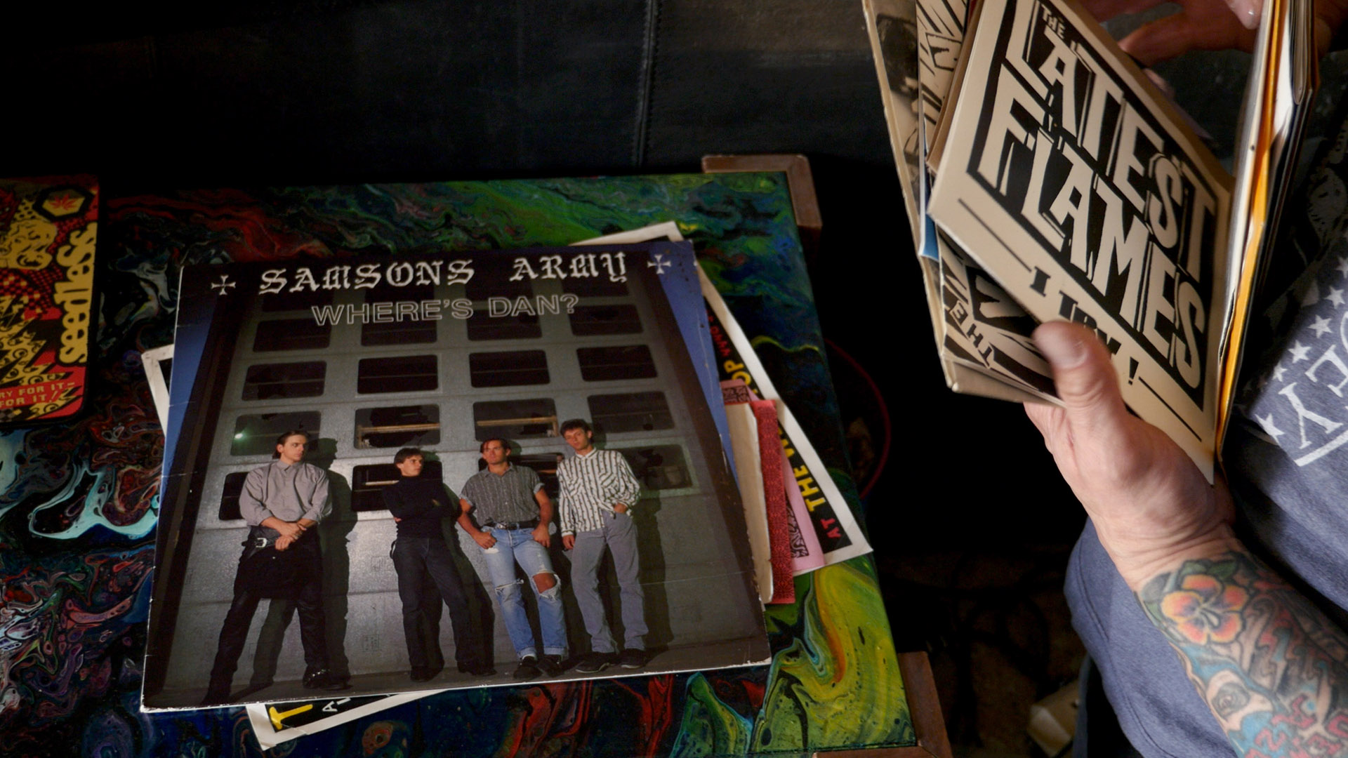 A person flips through 7-inch records